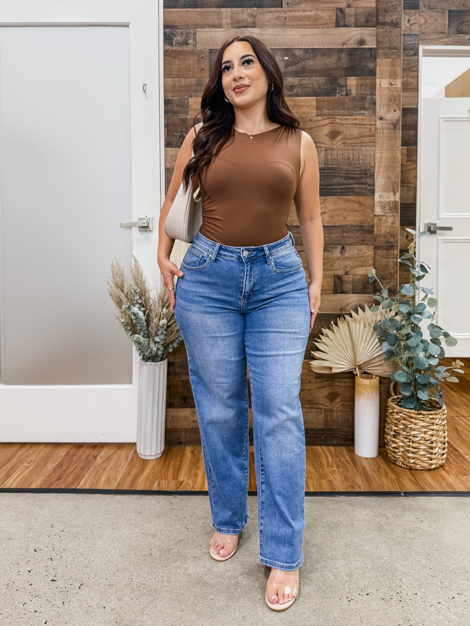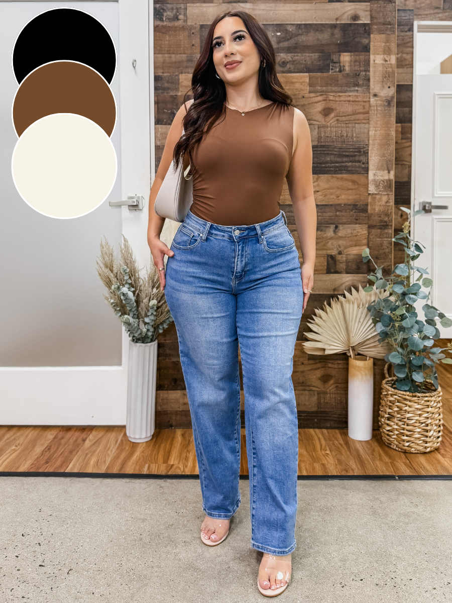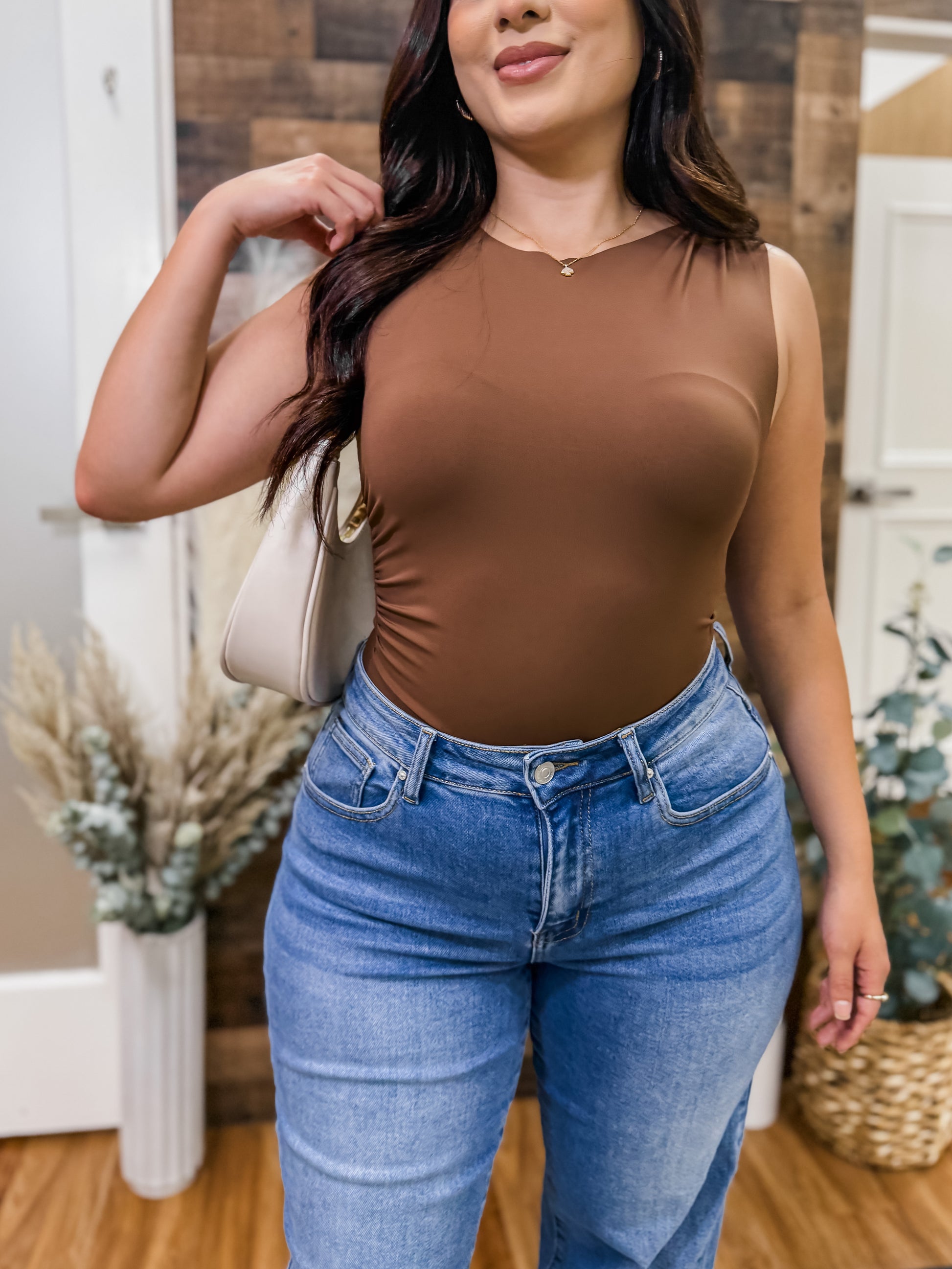 Alivia Ruched Laser Cut Sleeveless Bodysuit