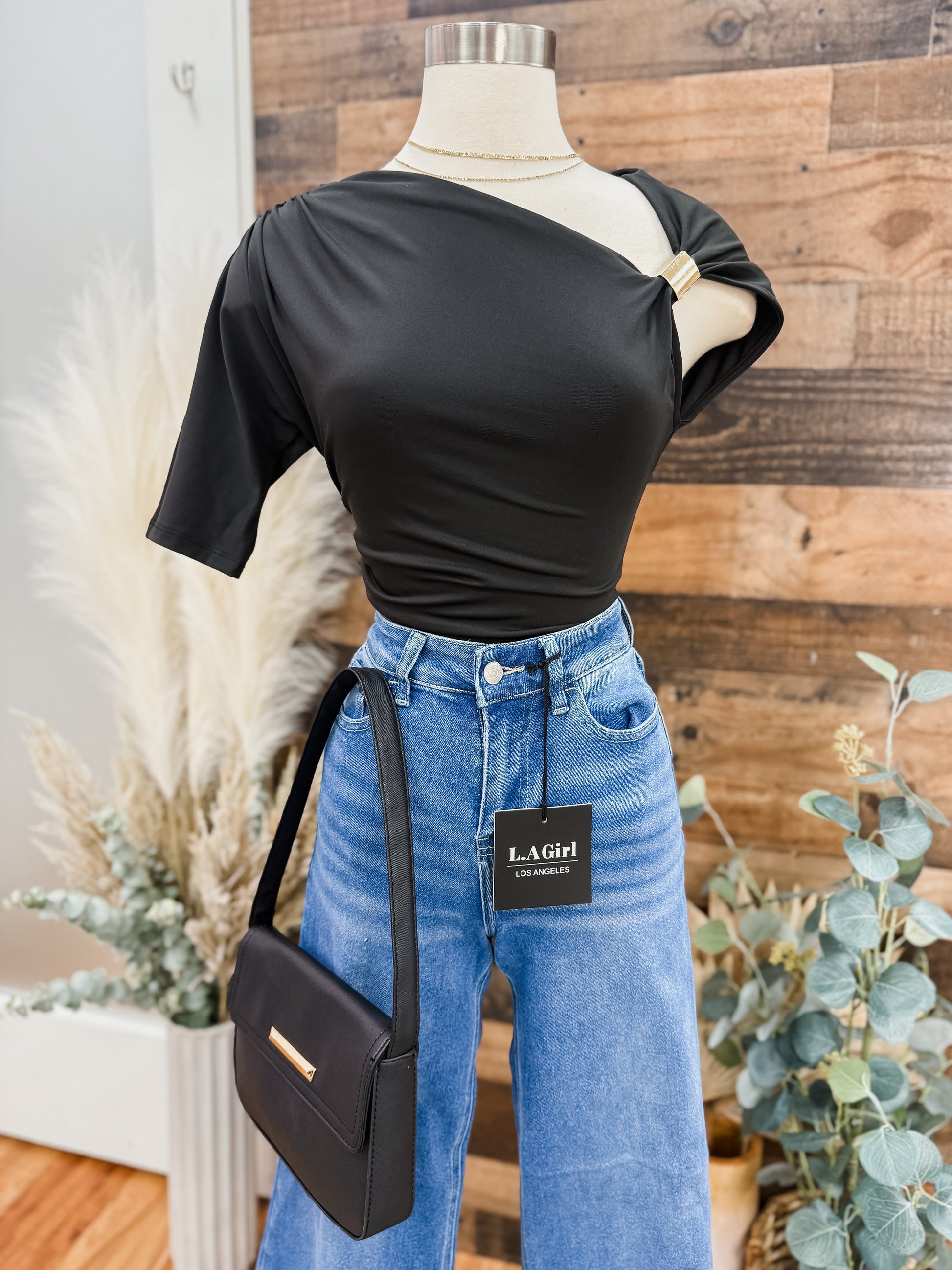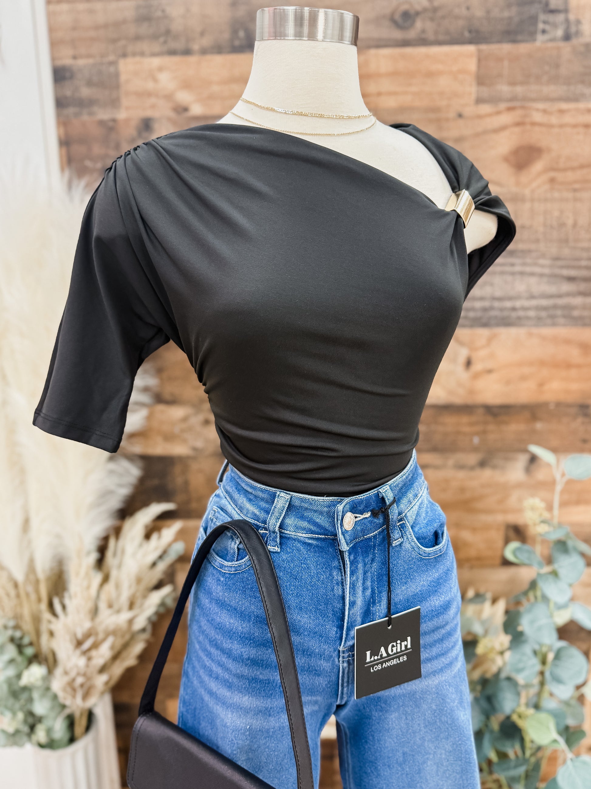 Arielle Asymmetrical Neckline Gold Detail Top