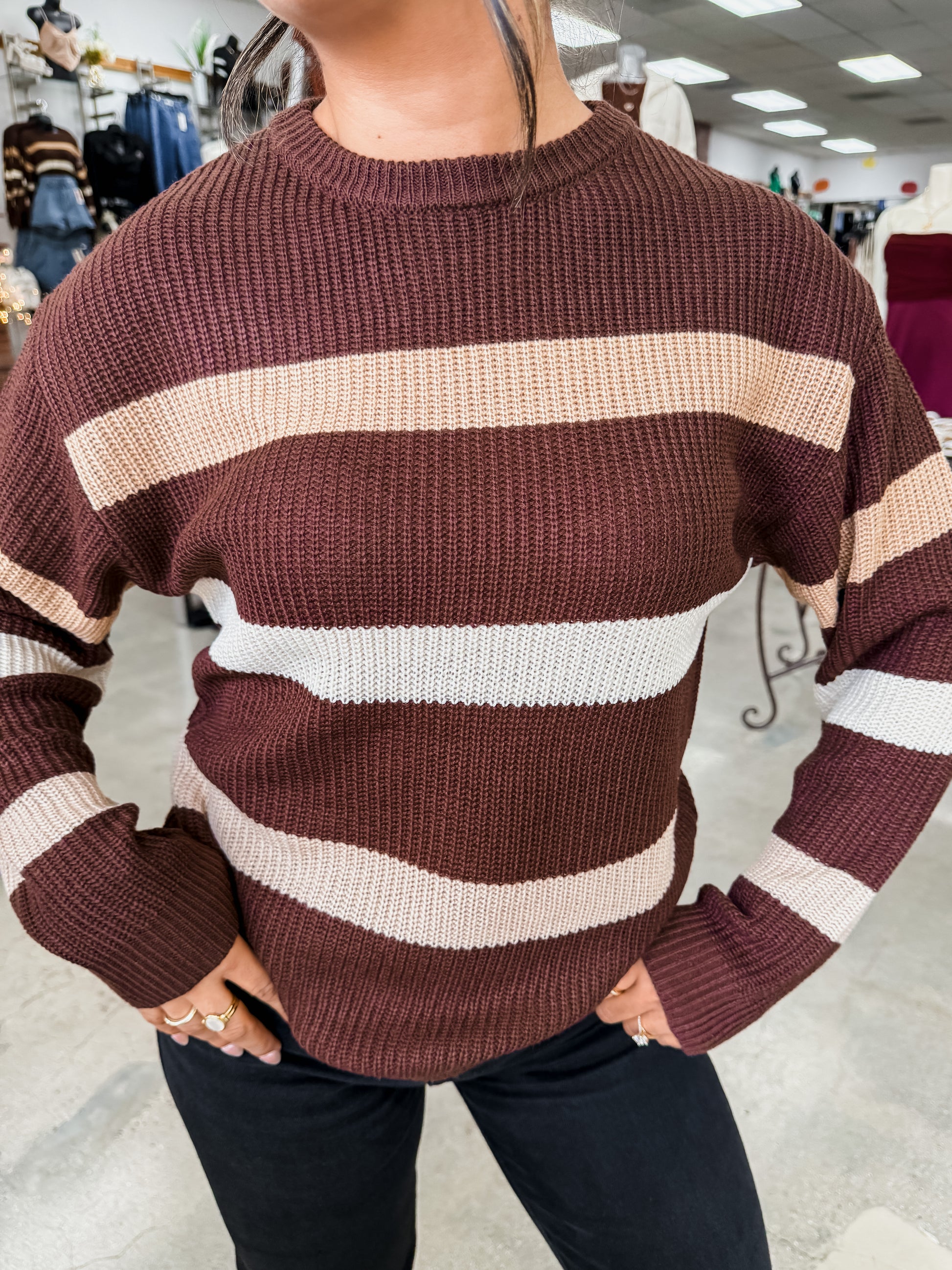 Striped acrylic sweater with baggy loose fit. Regular length.