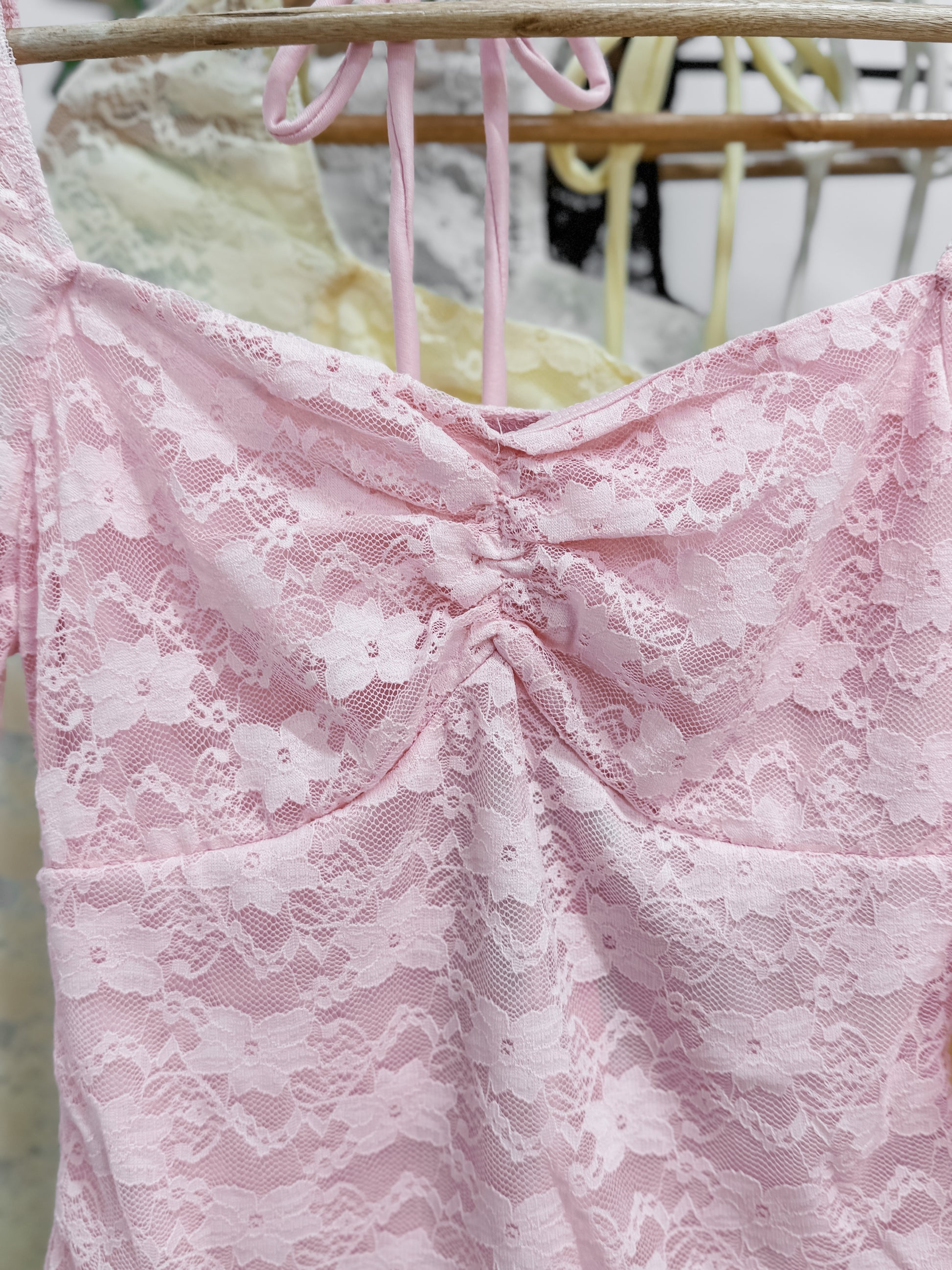Romantic lace long sleeve top with a lined bodice, sweetheart neckline, and back tie for a customizable fit. Perfect for special occasions and everyday elegance.