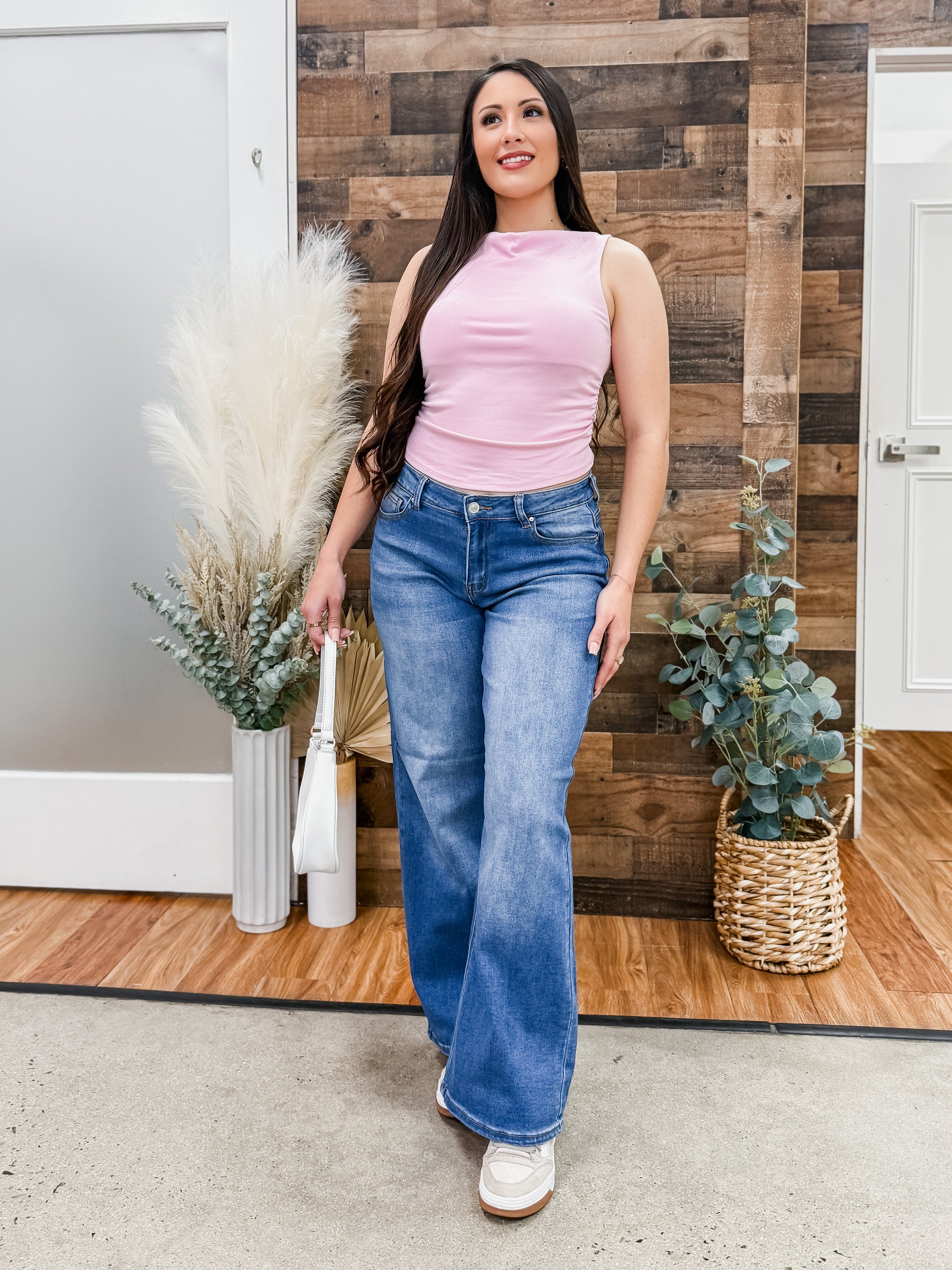 Meet your new go-to: the Liv Boat Neck Sleeveless Top. With its timeless boat neckline and breezy sleeveless silhouette, this top pairs with everything from denim to skirts. Simple, stylish, and endlessly fun.