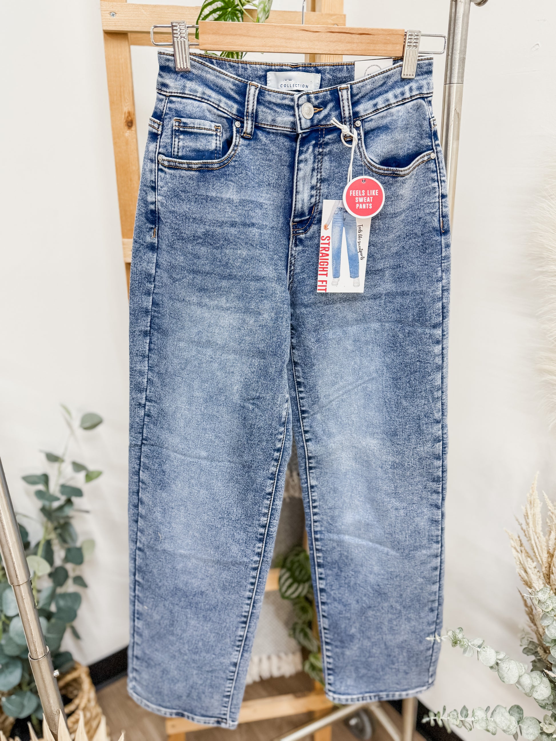 Super soft and stretchy mid rise jeans that feel like sweatpants.